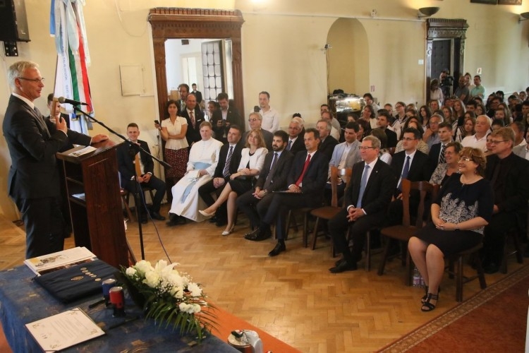 Fazakas Zoltán Márton csornai premontrei apát, Véghné Busics Hilda a gimnázium igazgatója és Soltész Miklós egyházi, nemzetiségi és civil társadalmi kapcsolatokért felelős államtitkár, a KDNP alelnöke