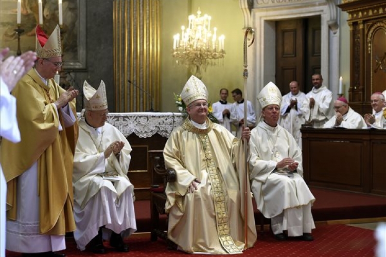 A vatikáni diplomáciát vezető bíboros-államtitkár mellett a társszentelő Erdő Péter bíboros, esztergom-budapesti érsek és Beer Miklós váci megyés püspök volt.