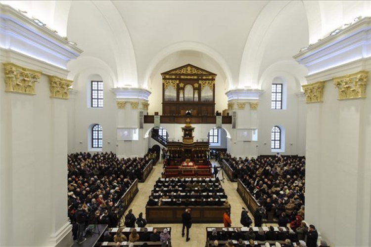 Résztvevők a Magyar Református Egyház jubileumi emlékévét megnyitó ünnepi istentiszteleten a debreceni Református Nagytemplomban 2017. január 31-én. (MTI Fotó: Czeglédi Zsolt)