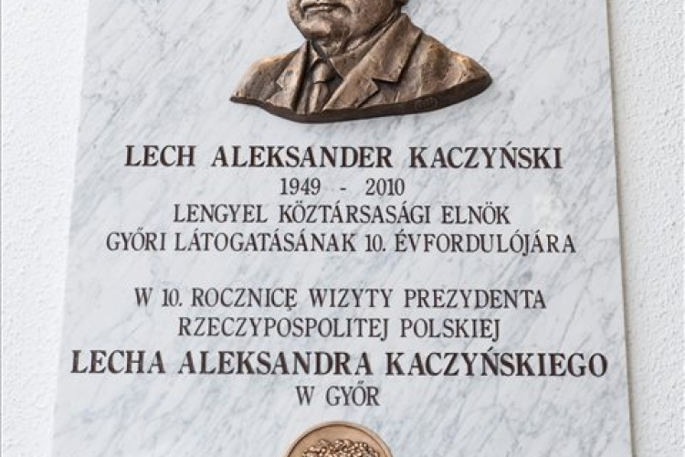 A győri lengyel nemzetiségi önkormányzat által szervezett esemény végén a Győri Nemzeti Színház aulájában emléktáblát avattak, Lebó Ferenc győri szobrászművész fehér márványból készült alkotását. A táblán felül Lech Kaczynski domborképe, alsó részén a lengyel-magyar barátság jelképe, az összefonódó két tölgyfa látható. Alatta magyarul és lengyelül is az olvasható, hogy „Lech Kaczynski lengyel köztársasági elnök győri látogatásának tizedik évfordulójára".