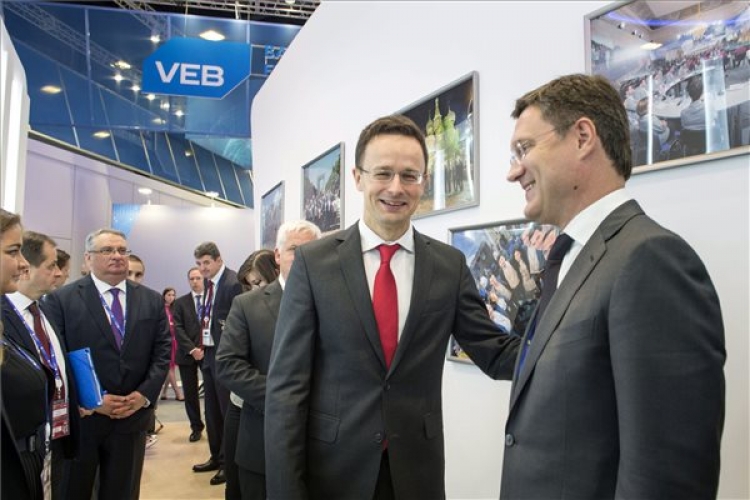 „A szankciós politika dacára az Európai Unió tagországai között éles verseny zajlik, hogy szorosabbra fűzzék az ipari és energetikai együttműködést Oroszországgal. Mi, magyarok is beneveztünk ebbe a versenybe" – nyilatkozta Szijjártó Péter.