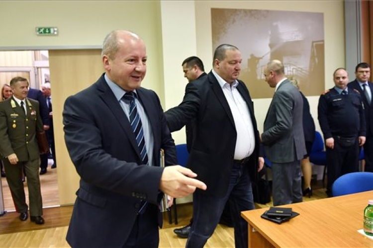 Simicskó István honvédelmi miniszter, a KDNP alelnöke (b2) érkezik meghallgatására az Országgyűlés honvédelmi és rendészeti bizottságának kihelyezett ülésére Németh Szilárd fideszes bizottsági elnök (b3) társaságában a Belügyminisztérium Országos Katasztrófavédelmi Főigazgatóságán 2017. december 6-án. Balra Benkő Tibor, a honvédvezérkar főnöke. (MTI Fotó: Illyés Tibor)