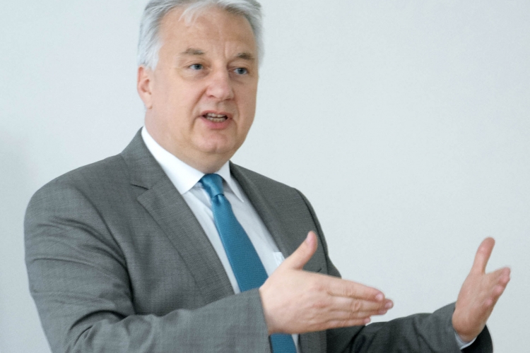 Semjén Zsolt miniszterelnök-helyettes, a Kereszténydemokrata Néppárt elnöke beszél Kovács K. Zoltán egykori kereszténydemokrata politikus írásaiból megjelent kötet bemutatóján (Fotó: Váli Miklós)