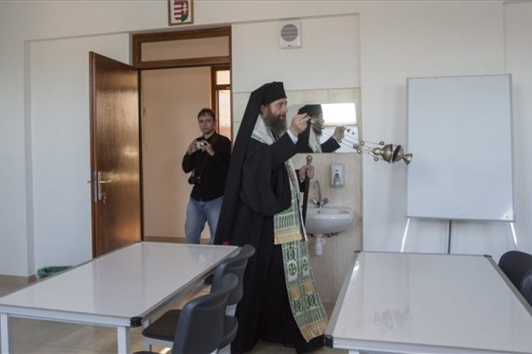 Siluan Manuila, a magyarországi román ortodox egyházmegye püspöke az új tantermekkel bővült battonyai Magdu Lucian Román Általános Iskola és Óvoda avatóünnepségén 2016. augusztus 31-én. (MTI Fotó: Rosta Tibor)