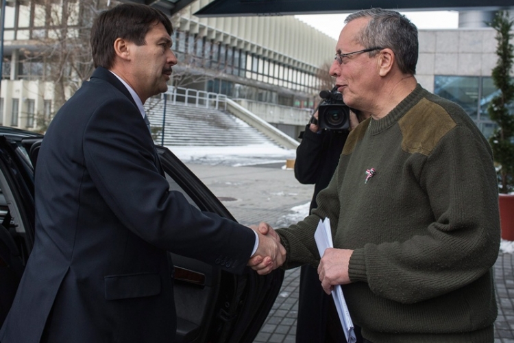 Áder János nem sokkal délután két óra után érkezett az ORFK székházához, az épület előtt Bakondi György, az Országos Katasztrófavédelmi Főigazgatóság vezetője fogadta.