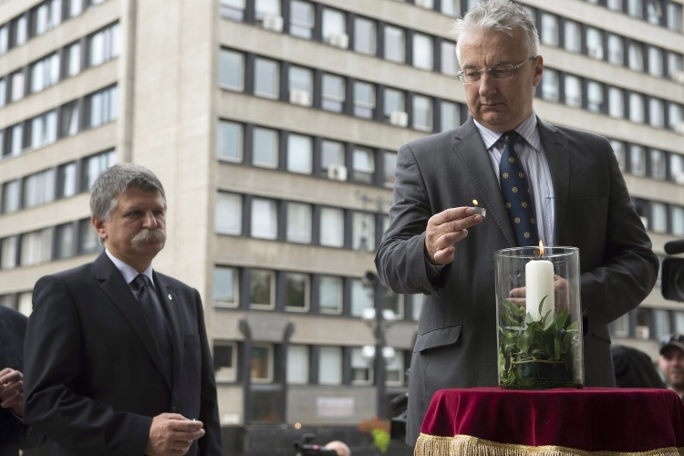 Kövér László, Országgyűlés elnöke és Semjén Zsolt, a Kereszténydemokrata Néppárt elnöke, nemzetpolitikáért felelős miniszterelnök-helyettes a Katolikus Karitász Gyújts egy gyertyát az üldözöttekért! elnevezésű szolidaritási akcióján a Szent István-bazilika előtt 2014. szeptember 19-én. A karitász egy héten keresztül várja azokat, akik egy gyertya meggyújtásával, egy imával szeretnék kifejezni a hitük miatt üldözöttek melletti szolidaritásukat.