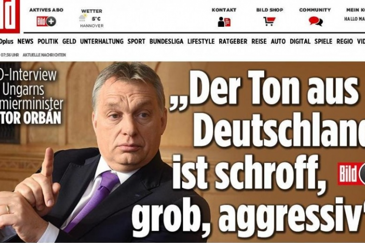 Orbán Viktor miniszterelnökkel közölt interjút csütörtöki számában Bild című német lap „A Németországból érkező hang goromba, durva, agresszív" címmel. A népszavazási kezdeményezéssel kapcsolatban a kormányfő elmondta, hogy nem Európa ellen, hanem a demokrácia érdekében megakadályozza meg az uniós jogot sértő EU-kényszerkvótát. Emmellett úgy véli, hogy nem lehet az emberek feje felett a jövendő nemzedékek életét nagyban megváltoztató döntéseket hozni.