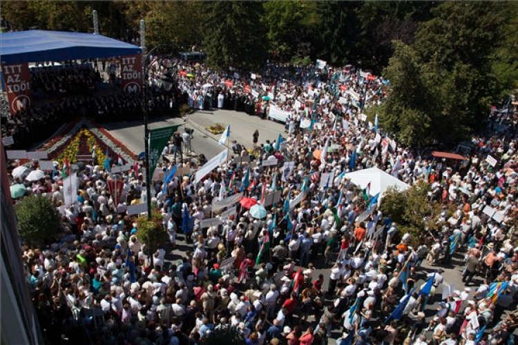 Székelyföld szabadságáért, területi autonómiájáért és a magyar történelmi egyházak által fenntartott erdélyi iskolák visszaállamosítása ellen tartottak tiltakozó demonstrációt a budapesti román nagykövetség épülete előtt mintegy háromszáz ember részvételével szombaton. A kordonokkal körbezárt XIV. kerületi román külképviselet épülete melletti Izsó utcában felállított színpadon György-Mózes Árpád, a Székelyföldért társaság elnöke azt mondta: a román kormány az elmúlt 19 év alatt nem tett eleget az európai felszólításoknak, hogy tartsa tiszteletben a kisebbségi jogokat, és az iskolák egyházi kézbe történő visszaszolgáltatása Románia uniós csatlakozás után leállt. Emlékezetett: a román állam a kommunista rendszerben nyolcezer egyházi ingatlant kobozott el, ebből 2140-re a magyar történelmi egyházak tartottak igényt, és ebből mindössze ötszázat szolgáltatott vissza a román állam, de a döntést a helyi és megyei önkormányzatok megfellebbezték.