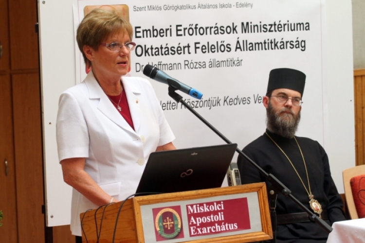 Hoffmann Rózsa a sajtótájékoztatót követően előadást tartott az edelényi intézmény aulájában, amely telt házzal várta a szakpolitikust. Előadását összefoglalva az államtitkár azt mondta: a múltat, a jelent, a jövőt vázolta fel, megmutatta azon összefüggéseket, amelyek rávilágítanak például az egyházak történelmi szerepére, ezek egyébként ma már fenntartóként, működtetőként is jelen vannak a közoktatásban. Megjegyezte: épp ezért vonták be az egyház jeles képviselőit a munkába, hiszen nagy hiba lett volna, ha nélkülük fognak hozzá az iskolarendszer átalakításához.