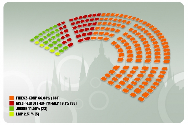 A Fidesz–KDNP pártszövetség magabiztos győzelmet aratott a 2014-es országgyűlési választásokon. A 96 egyéni mandátumon túl – a 2010-14 közötti parlamanti időszakban a választók többségének támogatását mindvégig megtartó pártszövetség – a listás szavazatok 44,46 százalékát szerezte meg.A magukat kormányváltóknak nevező baloldali pártok 26, a Jobbik 20,60, az LMP pedig 5,27 százalékot szerzett.