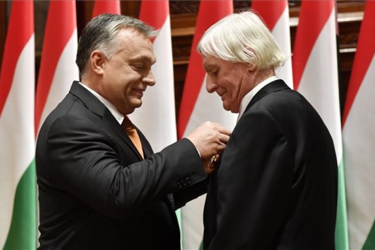 Fekete György, a Magyar Művészeti Akadémia távozó elnöke, miután átvette a Magyar Érdemrend Nagykeresztje kitüntetést Orbán Viktor miniszterelnöktől az Országházban 2017. október 30-án. MTI Fotó: Illyés Tibor