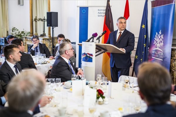 Orbán Viktor miniszterelnök előadást tart az Antall József Tudásközpont és a Konrad Adenauer Alapítvány rendezvényén a Konrad Adenauer Alapítvány (KAS) brüsszeli székházában 2017. január 26-án. (MTI Fotó: Miniszterelnöki Sajtóiroda / Szecsődi Balázs)