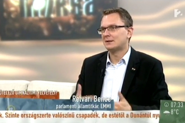 Bevezetése esetén a kötelező gimnáziumi felvételi a minőség biztosítéka lenne – jelentette ki az Emberi Erőforrások Minisztériumának parlamenti államtitkára a TV2 Mokka című műsorában pénteken. Rétvári Bence azt mondta, céljuk, hogy a gimnázium az egyetem „előszobája" legyen: ha valaki jó eredménnyel elvégzi a gimnáziumot, borítékolni lehessen, hogy könnyedén diplomát szerez majd, nem morzsolódik le a felsőoktatásban.
