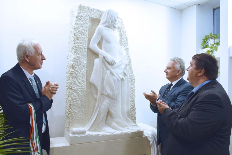 A főigazgató köszönetet mondott a kórházat 25 éve segítő Szent Lázár Lovagrendnek, és mindazoknak, akik adományai révén elkészülhetett Molnár Péter szobrászművész egészalakos szobra, amelynek talapzatán ez a mondat áll János evangéliumából: „De most is tudom, hogy bármit kérsz az Istentől, megadja neked."