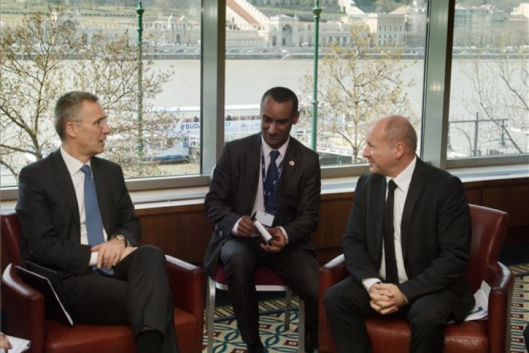 Simicskó István honvédelmi miniszter és Jens Stoltenberg, a NATO-főtitkára megbeszélésükön a budapesti Marriott szállodában 2017. március 23-án. Jens Stoltenberg részt vesz a NATO transzformációs szemináriumán a hotelben. (MTI Fotó: Koszticsák Szilárd)