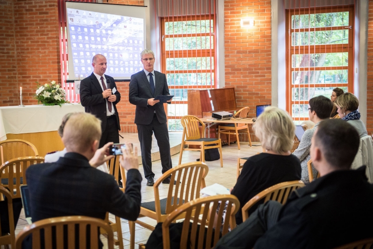 Fischl Vilmos, a Magyarországi Egyházak Ökumenikus Tanácsának (MEÖT) főtitkára és Soltész Miklós, az Emberi Erőforrások Minisztériumának egyházi, nemzetiségi és civil társadalmi kapcsolatokért felelős kereszténydemokrata államtitkára (Fotó: Botár Gergely/kormany.hu)