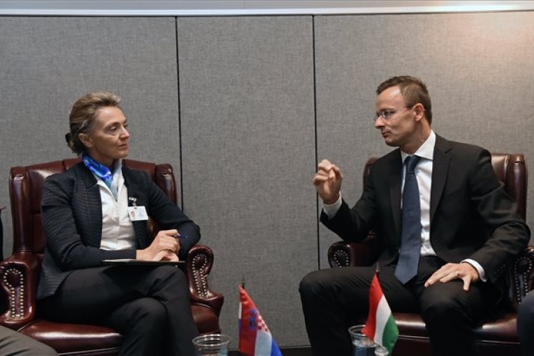 A Külgazdasági és Külügyminisztérium által közreadott képen Marija Pejcinovic Buric horvát külügyminiszter és Szijjártó Péter külgazdasági és külügyminiszter tárgyal az ENSZ Közgyűlése 72. ülésszakán 2017. szeptember 19-én. MTI Fotó: KKM