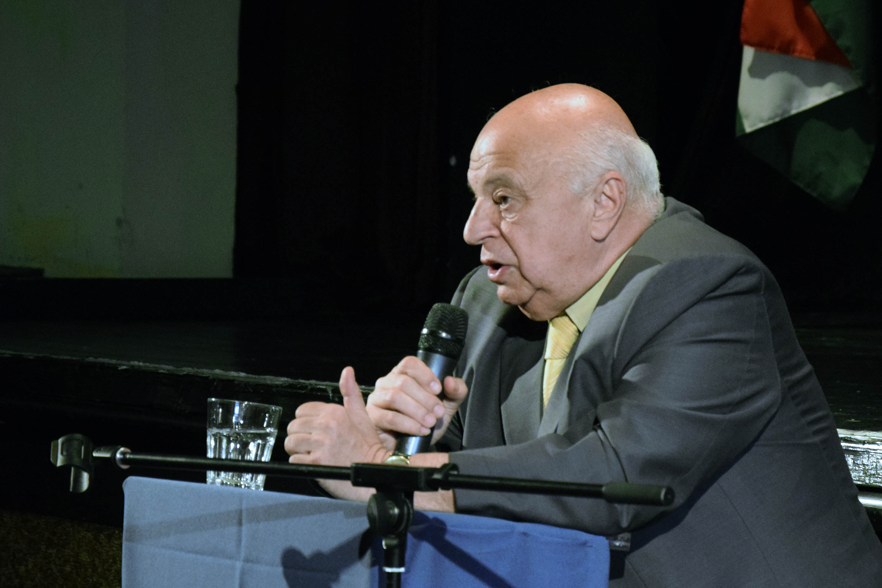Maróth Miklós egyetemi tanár, iszlámszakértő előadást tart a migrációról Vácott. (KDNP Fotó: Váli Miklós)