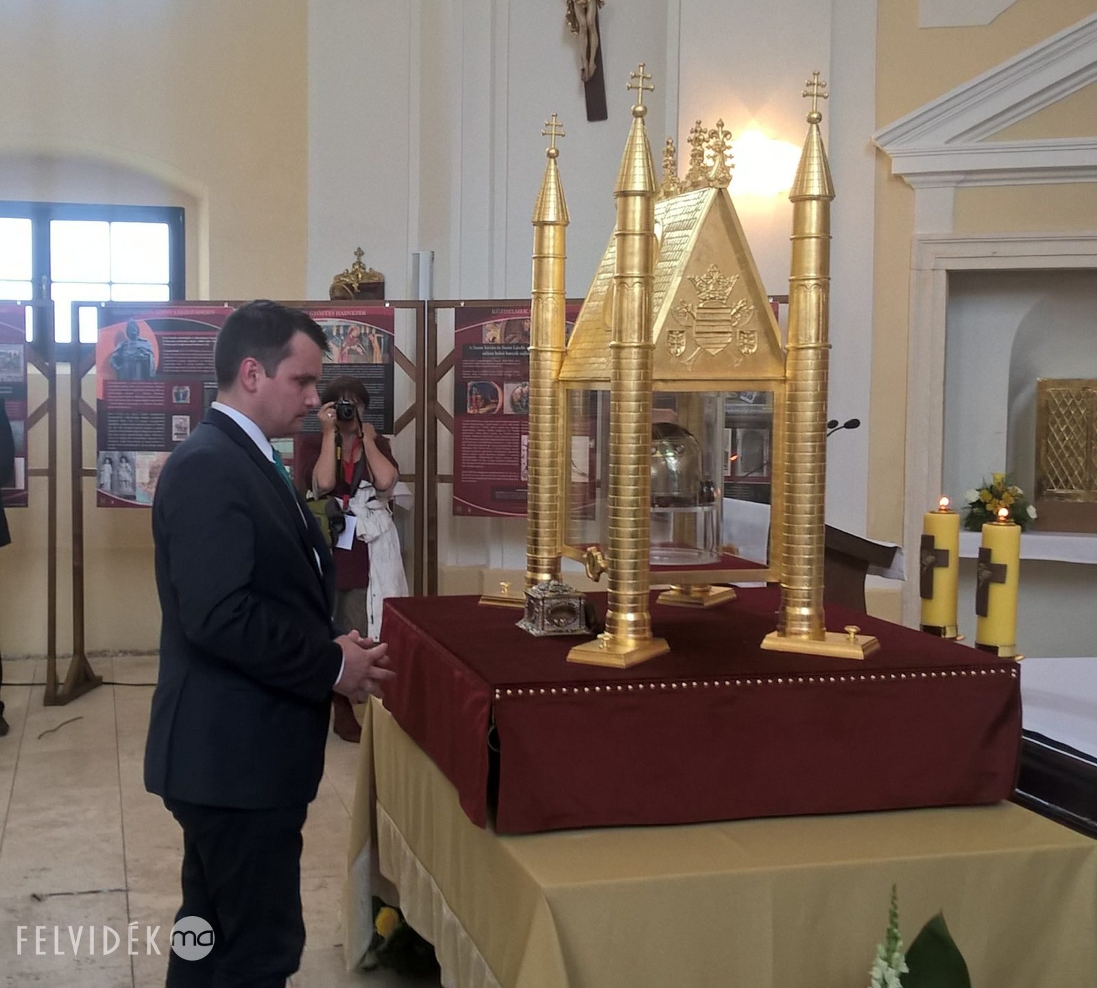 A nagyváradi várban Szent László erekyéje előtt (Fotó: Okos Márton)