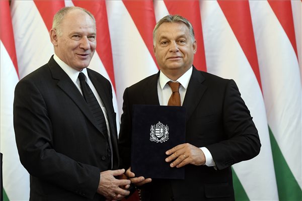Orbán Viktor miniszterelnök (j), Bogárdi Szabó István püspök, az MRE Zsinatának lelkészi elnöke (b), miután aláírták a kormány és a Magyarországi Református Egyház (MRE) közötti viszony alapelveiről, az együttműködést meghatározó feladatokról szóló megállapodást az Országházban 2017. október 4-én. A szerződés a korábbi, még 1998-ban kötött megállapodást újította meg. (MTI Fotó: Koszticsák Szilárd)