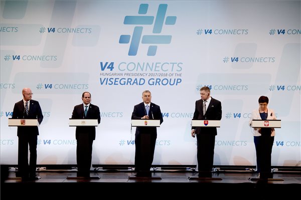 A visegrádi négyek (V4) kifejezték elismerésüket és megbecsülésüket Egyiptom elnökének azért a munkáért, amellyel stabilizálni próbálja országa térségét – közölte Orbán Viktor miniszterelnök a V4-kormányfők és az egyiptomi elnök keddi budapesti csúcstalálkozóját követő sajtónyilatkozatában.