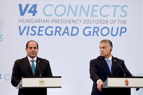 A visegrádi országok (V4) különleges helyzetben vannak az EU-ban és a világban, ezért Egyiptomnak érdemes megerősítenie a partnerségét a csoporttal – mondta Abdel-Fattáh esz-Szíszi egyiptomi elnök a V4 miniszterelnökei és az egyiptomi államfő találkozóján kedden Budapesten. A V4-es kormányfők Egyiptom illegális migráció elleni küzdelmét méltatták.