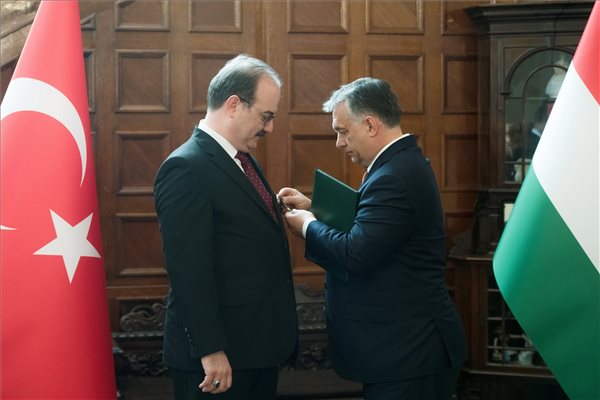 Orbán Viktor miniszterelnök kitünteti Serdar Camot, a Török Együttműködési és Koordinációs Ügynökség (TIKA) elnökét a Magyar Érdemrend középkeresztje kitüntetéssel az ankarai magyar nagykövetségen 2017. június 30-án. (MTI Fotó: Koszticsák Szilárd)