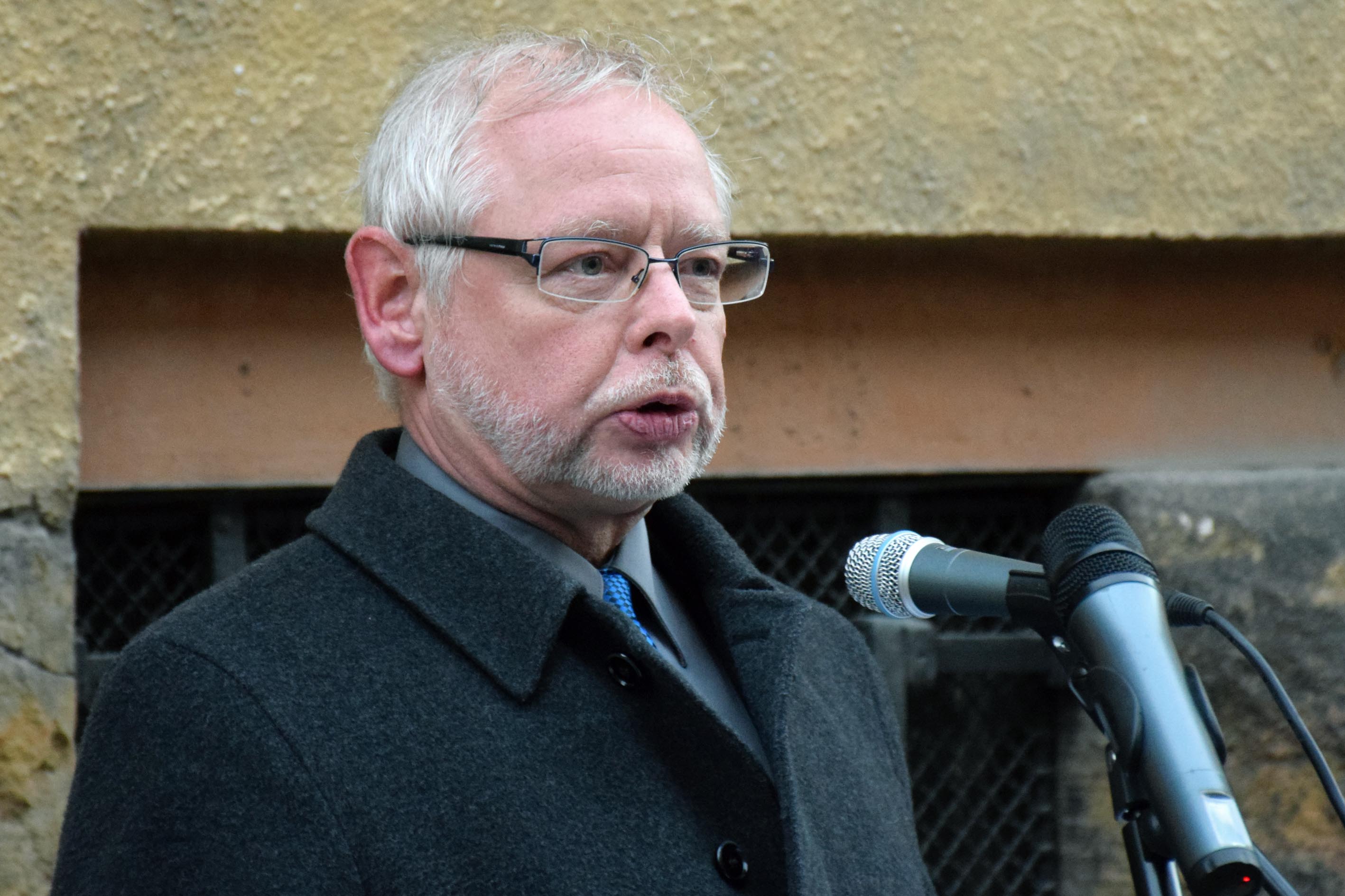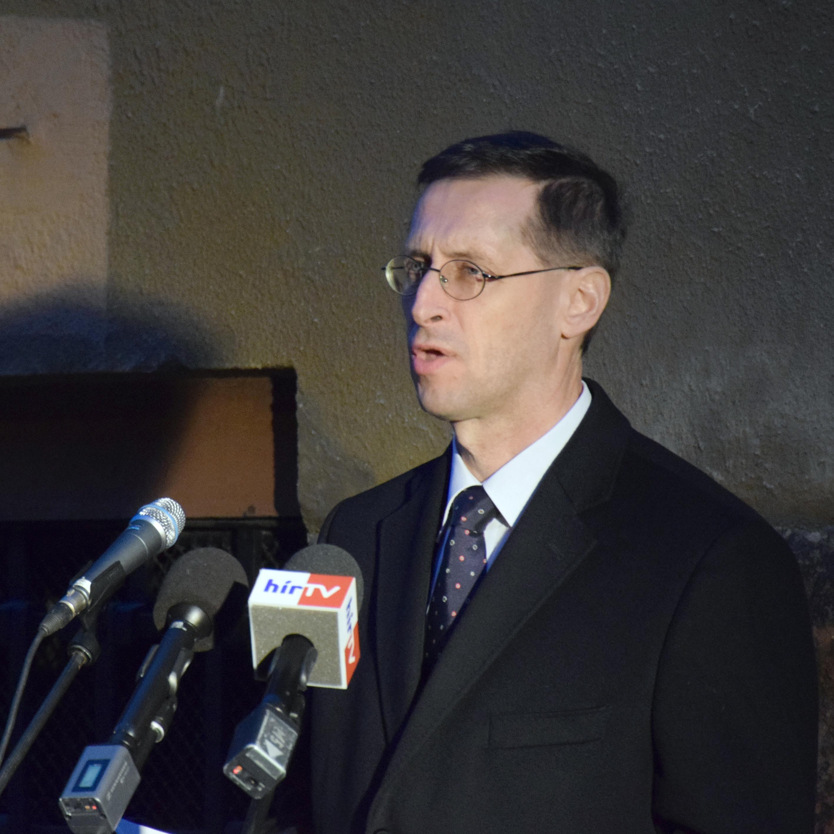 Bagdy Gábor főpolgármester-helyettes, a Kereszténydemokrata Néppárt fővárosi elnöke a kommunizmus áldozatai emléknapja alkalmából tartott megemlékezésén a Gyorskocsi utcai emléktáblánál 2017. február 23-án. (KDNP Fotó: Váli Miklós)