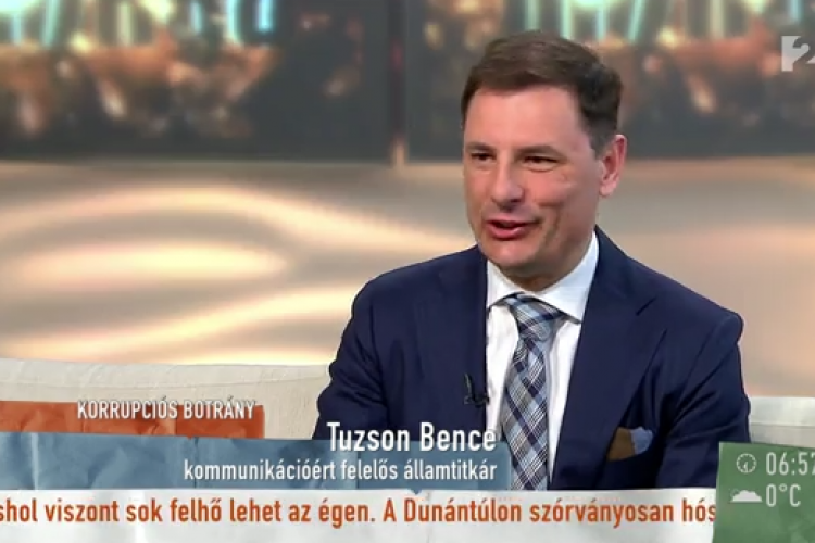 Tuzson Bence, kormányzati kommunikációért felelős államtitkár csütörtökön a TV2 reggeli műsorának vengédeként