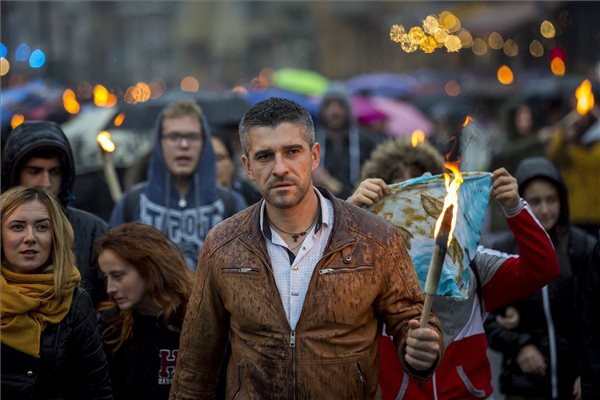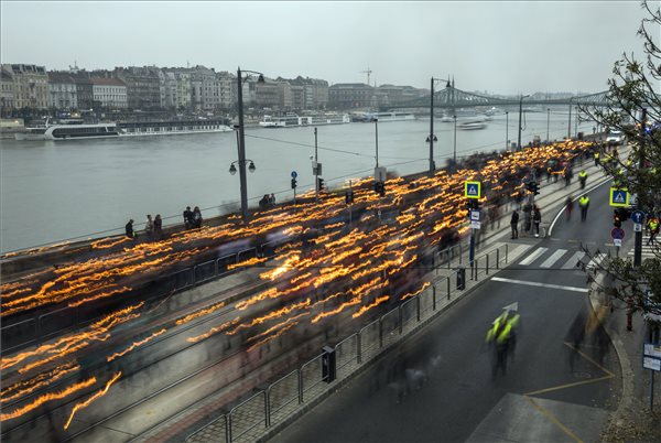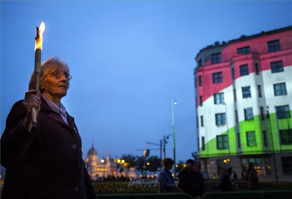 Az 1956-os forradalom és szabadságharc 61. évfordulója alkalmából rendezett, a Bem térre tartó hagyományos fáklyás emlékmenet Budapesten 2017. október 22-én. (MTI Fotó: Mohai Balázs)