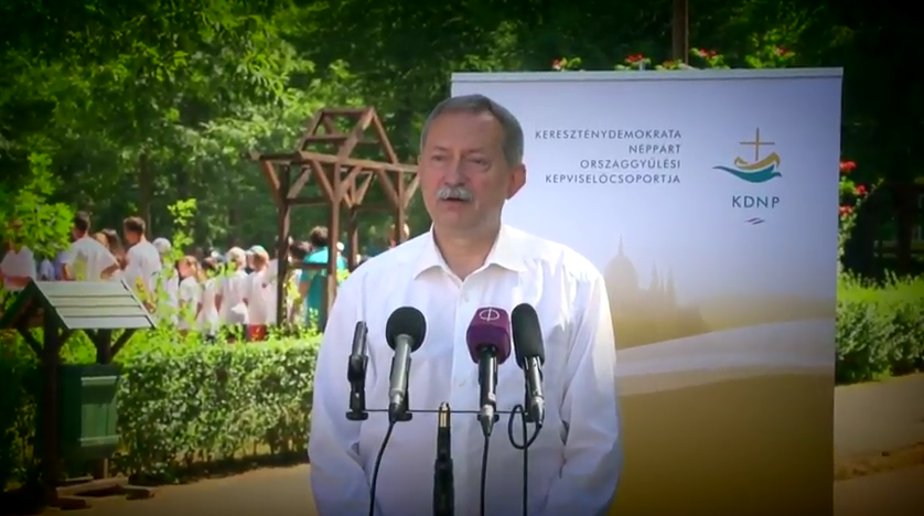 Szászfalvi László, Somogy megyei kereszténydemokrata országgyűlési képviselő sajtótájékoztatót tart Berzencén 2017. július 7-én.