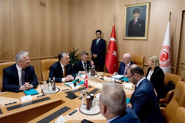 Orbán Viktor miniszterelnök, mellette Semjén Zsolt nemzetpolitikáért felelős miniszterelnök-helyettes megbeszélést folytat Ismail Kahraman török házelnökkel (k) Ankarában 2017. június 30-án. (MTI Fotó: Koszticsák Szilárd)