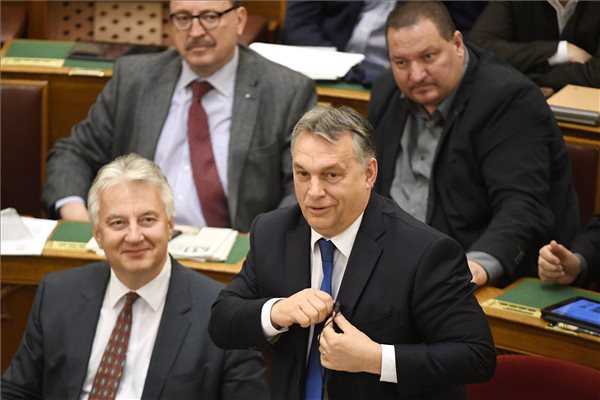 Orbán Viktor miniszterelnök azonnali kérdésre válaszol az Országgyűlés plenáris ülésén 2016. december 12-én. Mellette Semjén Zsolt nemzetpolitikáért felelős miniszterelnök-helyettes. (MTI Fotó: Koszticsák Szilárd)