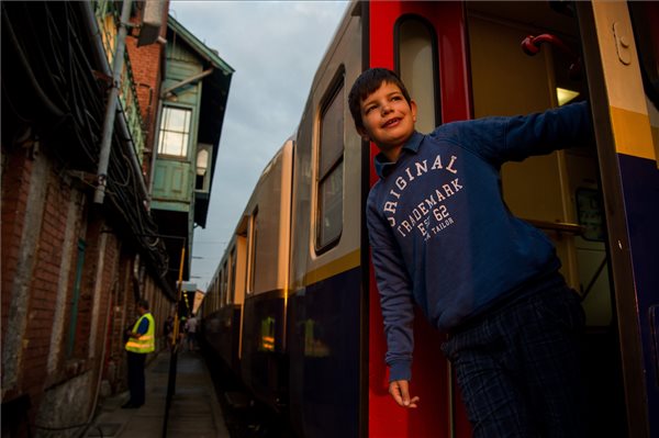 Egy kisfiú a csíksomlyói búcsúba induló Boldogasszony zarándokvonaton a budapesti Nyugati pályaudvaron 2017. június 1-jén. (MTI Fotó: Balogh Zoltán)