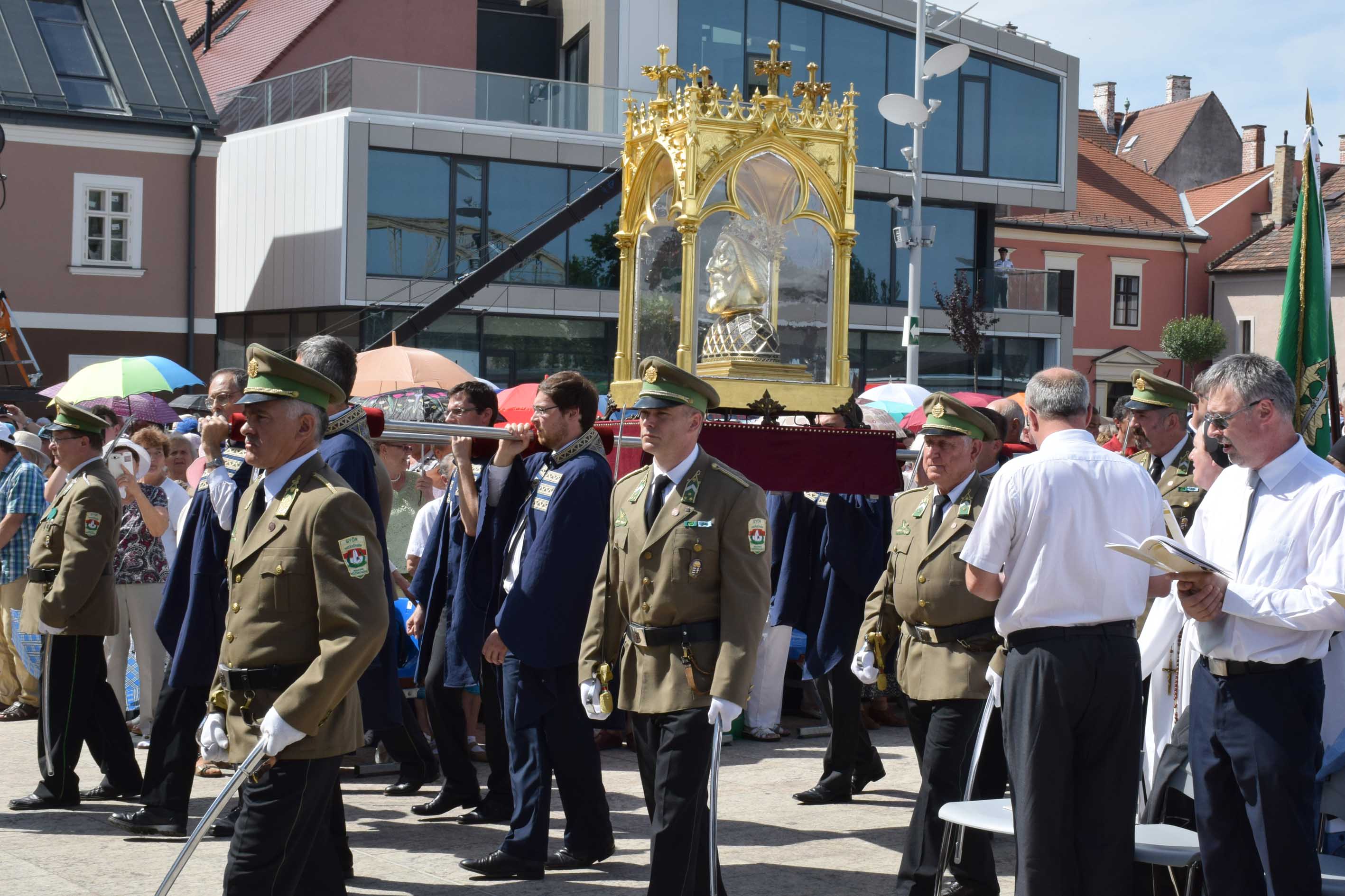 A Szent László-herma körmenete a Szent László-napok alkalmából tartott szabadtéri szentmise után Győrben 2017. június 27-én. (KDNP Fotó: Váli Miklós)