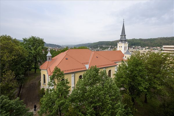 A megújult salgótarjáni főplébánia-templom 2017. május 7-én. A belvárosi templom tetőszerkezetét a Váci Egyházmegye és az Emberi Erőforrások Minisztériuma támogatásával, valamint a hívek adományaiból újították fel. (MTI Fotó: Komka Péter)