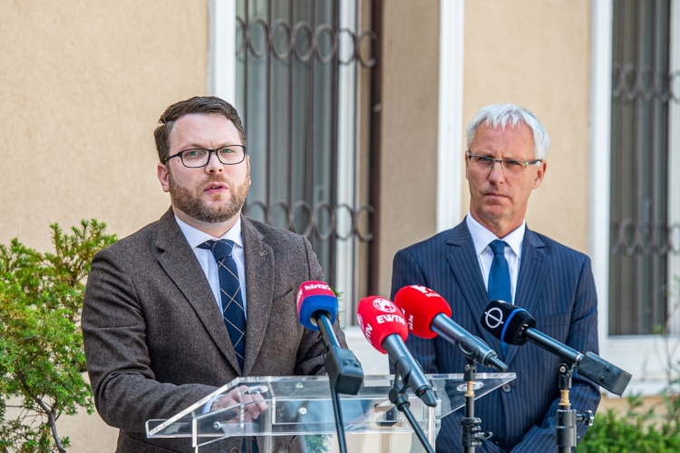 Soltész Miklós (balra) és Schanda Tamás államtitkárok, a Kereszténydemokrata Néppárt alelnökei (Fotó: ITM / Véssey Endre)