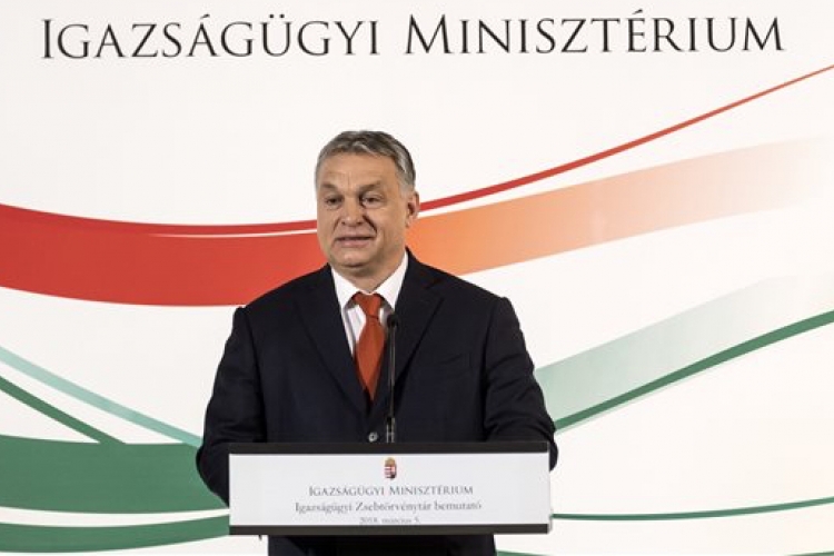 Orbán Viktor miniszterelnök beszédet mond az Igazságügyi zsebtörvénytár című kiadvány bemutatóján a Magyar Tudományos Akadémián 2018. március 5-én. (MTI Fotó: Szigetváry Zsolt)