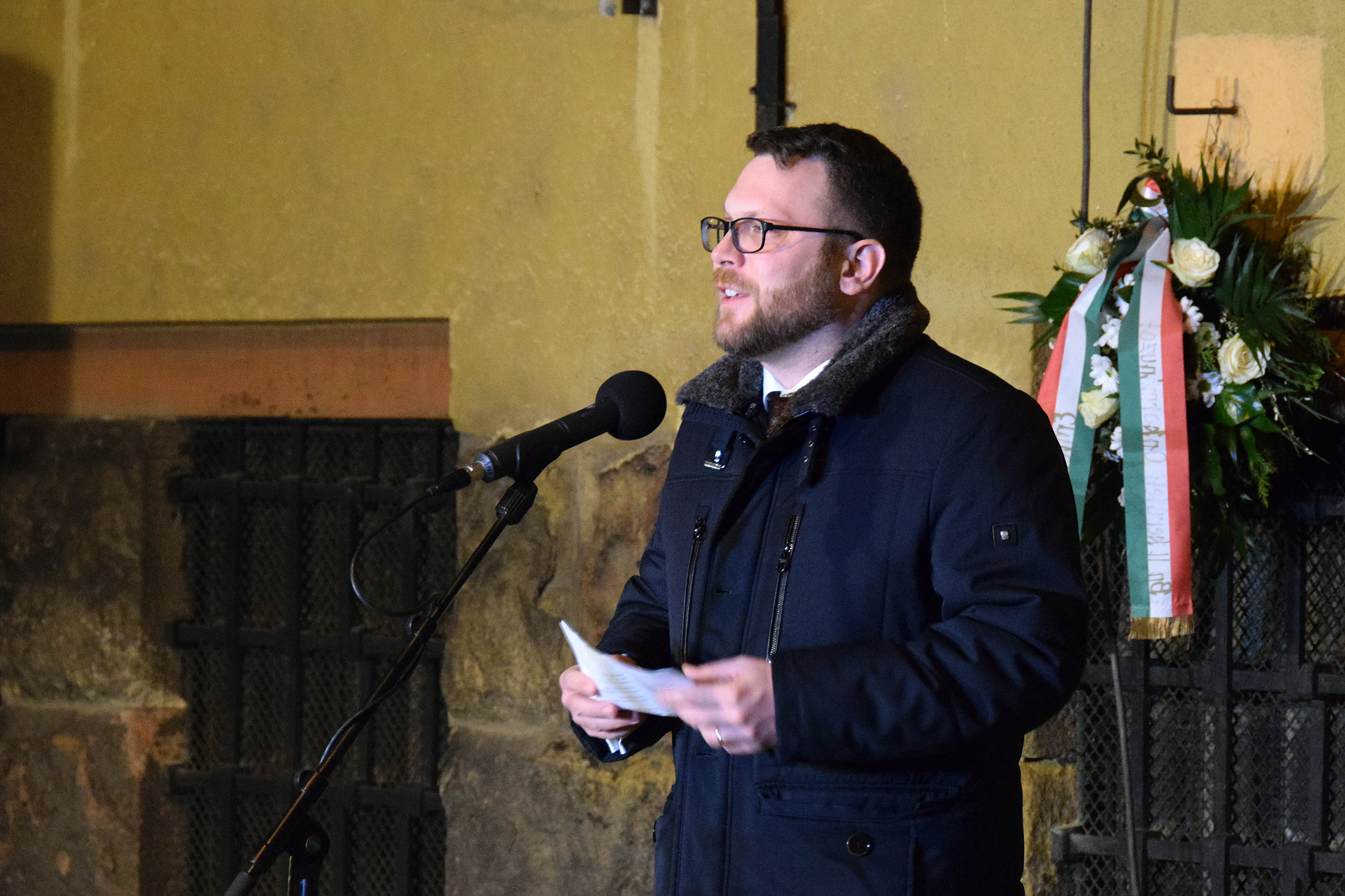 Láng Zsolt, a Fővárosi Közgyűlés Fidesz-KDNP frakciójának vezetője, a Fidesz budapesti elnöke beszédet mond a kommunizmus áldozatainak emléknapján a budapesti Gyorskocsi utcai börtönnél rendezett megemlékezésen (Budapest, 2020.02.25. KDNP fotó: Váli Miklós)