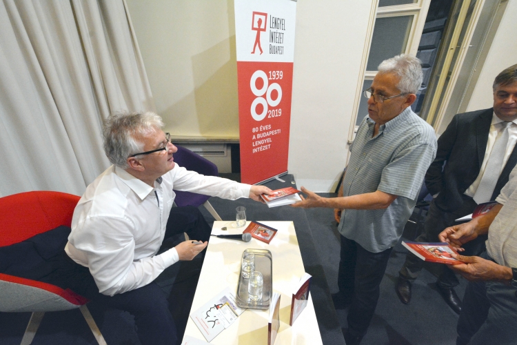 Semjén Zsolt dedikálja kötetét annak bemutatóján kedden este Budapesten, a Lengyel Intézetben (KDNP Fotó: Váli Miklós)