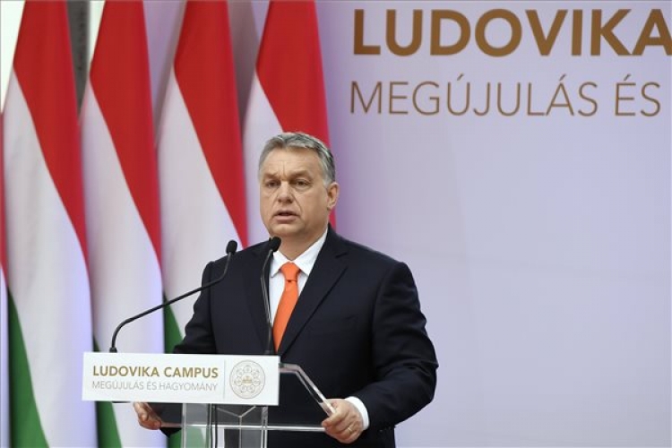 Orbán Viktor miniszterelnök beszédet mond a Nemzeti Közszolgálati Egyetem (NKE) Ludovika Campusának átadásán 2018. április 4-én. (MTI Fotó: Koszticsák Szilárd)