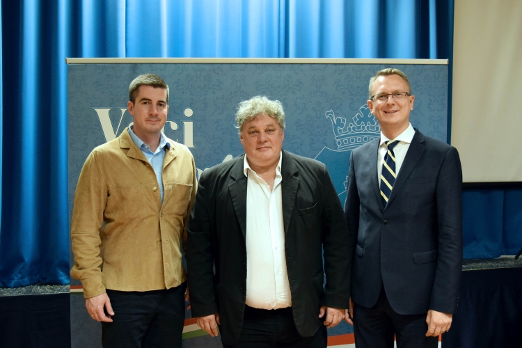 Kocsis Máté, a Fidesz frakcióvezetője, Fördős Attila, Vác kereszténydemokrata polgármestere, a Fidesz-KDNP jelöltje és Rétvári Bence, a térség KDNP-s képviselője, a kisebbik kormánypárt alelnöke, az EMMI parlamenti államtitkára (KDNP Fotó: Váli Miklós)