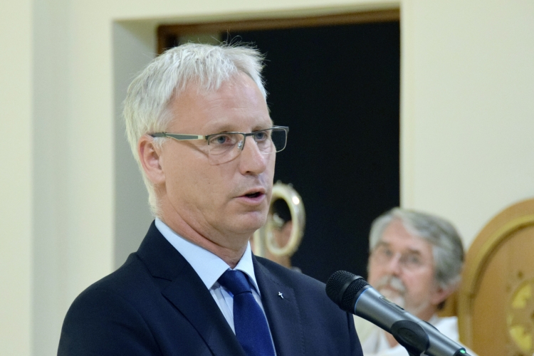 Soltész Miklós (KDNP), a Miniszterelnökség egyházi és nemzetiségi kapcsolatokért felelős államtitkára beszédet mond a Dunakeszi-Alag-i Szent Imre Plébániatemplom felszentelésén (Dunakeszi, 2019.07.07. KDNP fotó: Váli Miklós)