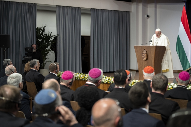 Tehát egy olyan Európára gondolok, amely nem válik a részeinek túszává és az önmagára hivatkozó populizmus áldozatává, de nem is válik cseppfolyós, sőt gáznemű dologgá, egyfajta absztrakt szupranacionalizmus képviselőjévé, amely nem vesz tudomást a népek életéről. Ez az „ideológiai gyarmatosítás” alantas útja, amely eltünteti a különbségeket – mint az úgynevezett gender-kultúra esetében – vagy a szabadság beszűkített fogalmait helyezi az élet valósága elé, például vívmányként dicsekedve az értelmetlen „abortuszhoz való joggal”, ami mindig tragikus vereséget jelent. Ehelyett milyen csodálatos, ha egy személy- és emberközpontú Európát építünk, ahol hatékony születés- és családpolitika működik, mint amilyet ebben az országban oly gondosan művelnek, ahol a különböző nemzetek egy családot alkotnak, amelyben mindegyikük növekedését és egyediségét ápolják. Vannak olyan országok Európában, ahol az átlagéletkor 46-48 év. Budapest leghíresebb hídja, a Lánchíd segít abban, hogy egy ilyen Európát képzeljünk el, egy sok különböző láncszemből állót, amelyek az összetartozásban találják meg szilárdságukat. Ebben segítségünkre van a keresztény hit, és Magyarország „hídépítő” lehet, kihasználva sajátos ökumenikus jellegét: itt különböző felekezetek élnek egymás mellett, ellentétek nélkül – emlékszem az összejövetelre, melyen együtt voltam velük másfél évvel ezelőtt –, tisztelettudóan, építő szellemben együttműködve. Lélekben és a szívemben a pannonhalmi apátság, az ország egyik nagy lelki emlékműve felé fordulok, az imádság helye és a testvériség hídja felé.