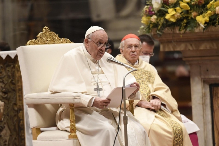 Sok író megidézte már a csillagos éjszakák szépségét. A háború éjszakáit viszont halálos fénycsíkok barázdálják. Ezen az éjszakán, testvéreim és nővéreim, engedjük, hogy az evangéliumi asszonyok kézen fogjanak bennünket, hogy velük együtt felfedezzük Isten fényének felkeltét, mely beragyogja a világ sötétségét. Ezek az asszonyok, amikor az éjszaka már lassan véget ért, és a hajnal első fényei észrevétlenül kezdtek derengeni, a sírhoz mentek, hogy bekenjék Jézus testét. És ott megrázó élményben volt részük: először is felfedezik, hogy a sír üres; aztán két, tündöklő ruhába öltözött alakot látnak, akik közlik velük, hogy Jézus feltámadt; ők pedig azonnal szaladnak, hogy hírt adjanak róla a többi tanítványnak (vö. Lk 24,1–10). Látnak, hallanak, hírt adnak: mi is ezzel a három cselekedettel lépjünk be az Úr húsvétjába.