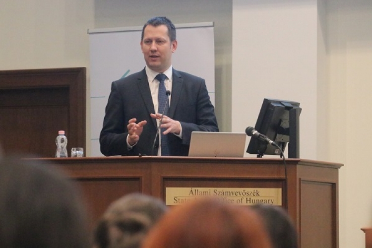 Fülöp Attila, az Emberi Erőforrások Minisztériumának (Emmi) szociális ügyekért felelős államtitkára előadást tart az Állami Számvevőszék „Jó gyakorlatok" szemináriumsorozatának 10. vezetőképzésén (Fotó: Ász Hírportál)