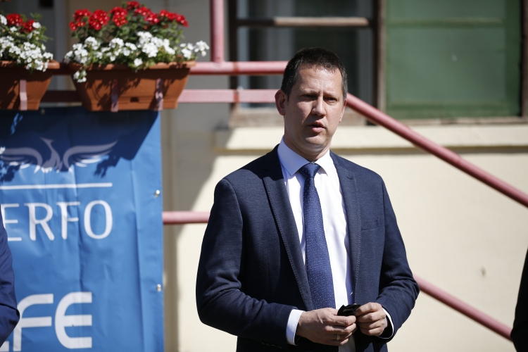 Fülöp Attila, az Emberi Erőforrások Minisztériumának szociális ügyekért felelős államtitkára beszédet mond a Kézmű, Erfo és Főkefe közhasznú nonprofit társaságokból álló cégcsoport megváltozott munkaképességűeket foglalkoztató új üzemének átadásán Berkesden 2021. május 11-én (_Fotó: MTI / Varga György)