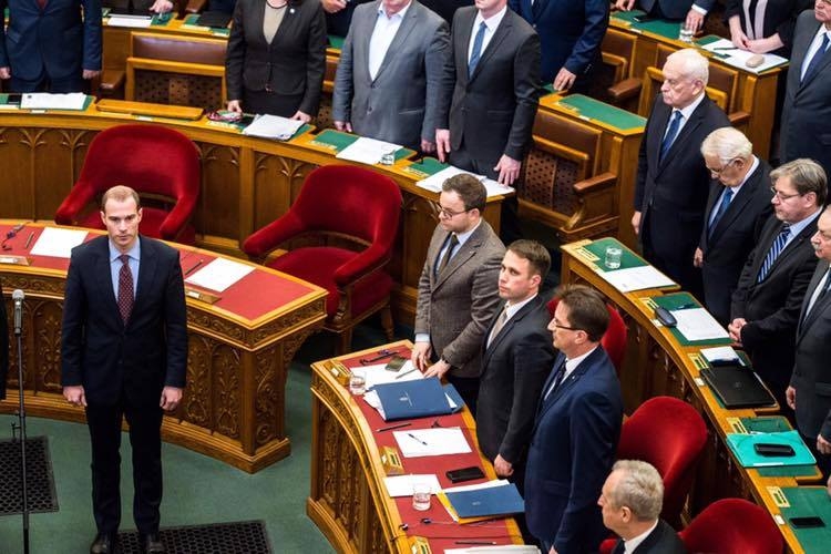 Hollik István (KDNP) kormányszóvivő leteszi képviselői esküjét az Országgyűlésben, 2019.02.18-án