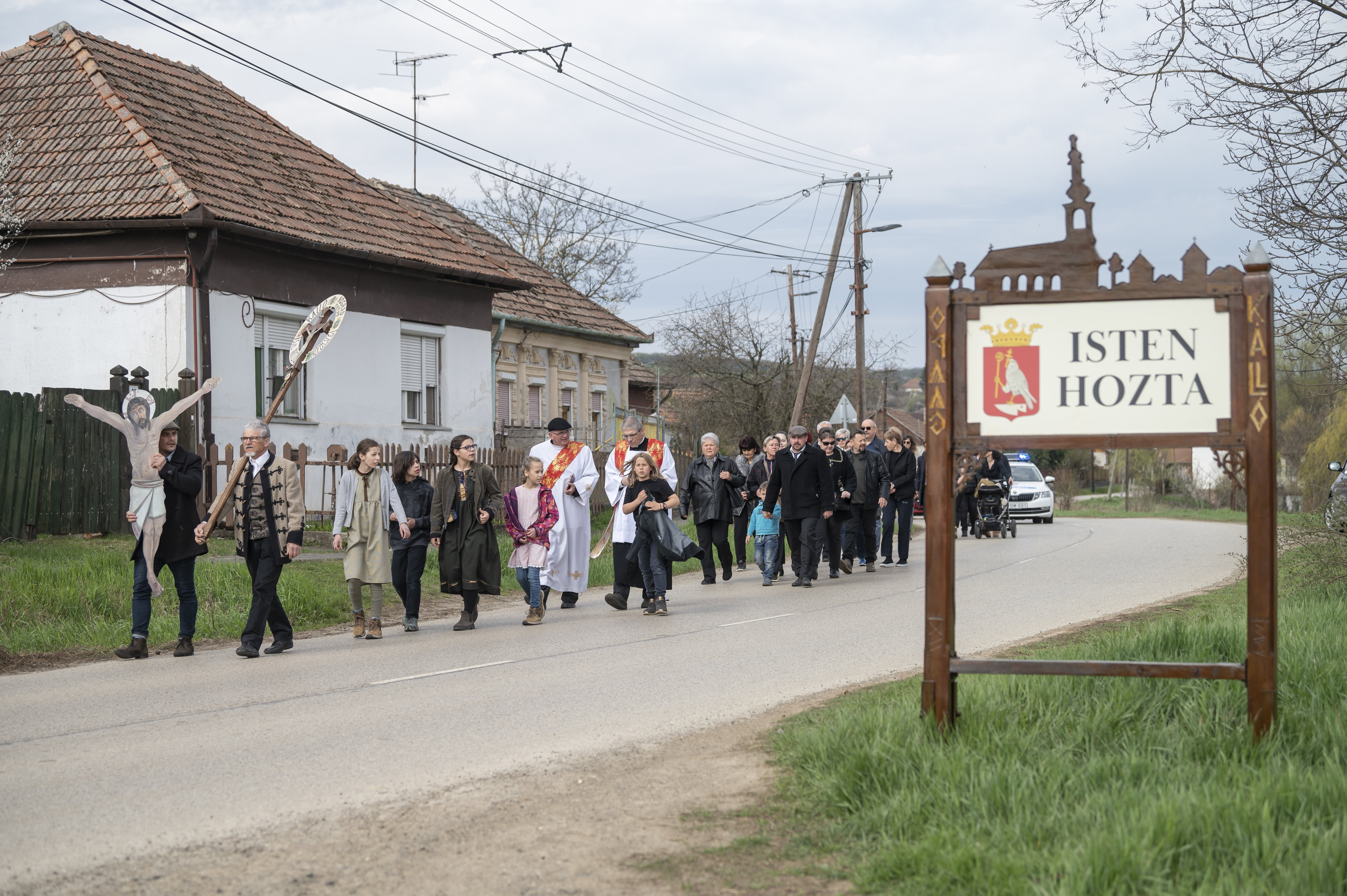 A keresztállító menet a katolikus templomtól indult a mintegy két kilométernyi távolságra lévő, a falu határában, a Versegi úton álló kereszthez, amelyet a helyi Baboss Csongor faragott, betontalapzata pedig társadalmi összefogással készült.