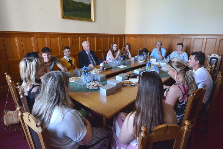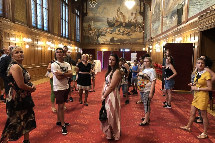 A vendégek közül sokan most először jártak az épületben, és olyan helyekre is bemehettek, ahová csak kevesek jutnak be – megnézték a Vadászterem freskóit és az erkélyről nyíló panorámát is. A közös ebéd után az országházi múzeumban ért véget a találkozó.